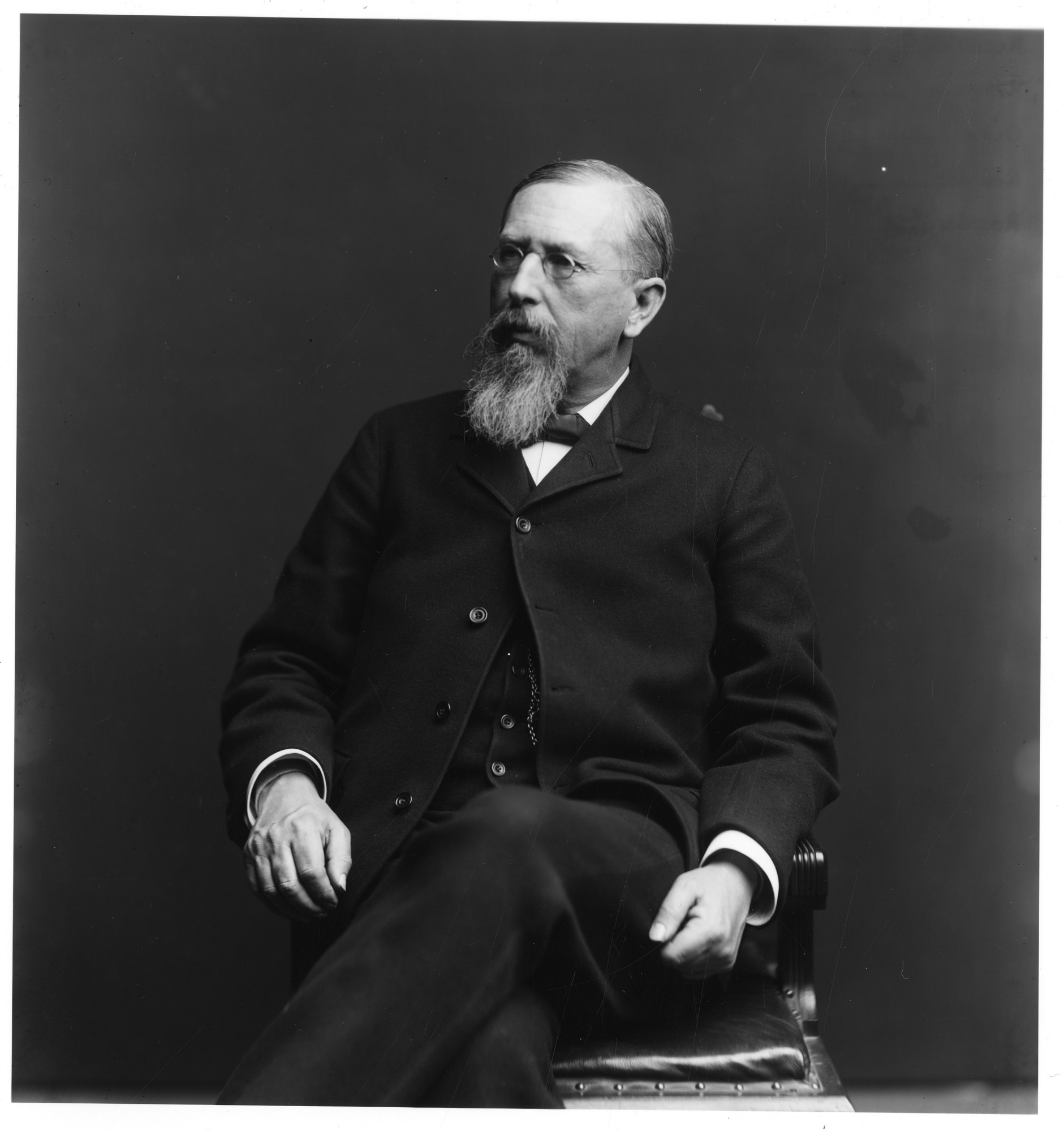 William H. Dall, curator of echinoderms for the United States National Museum, now known as the National Museum of Natural History, seated in a chair looking off to his right.