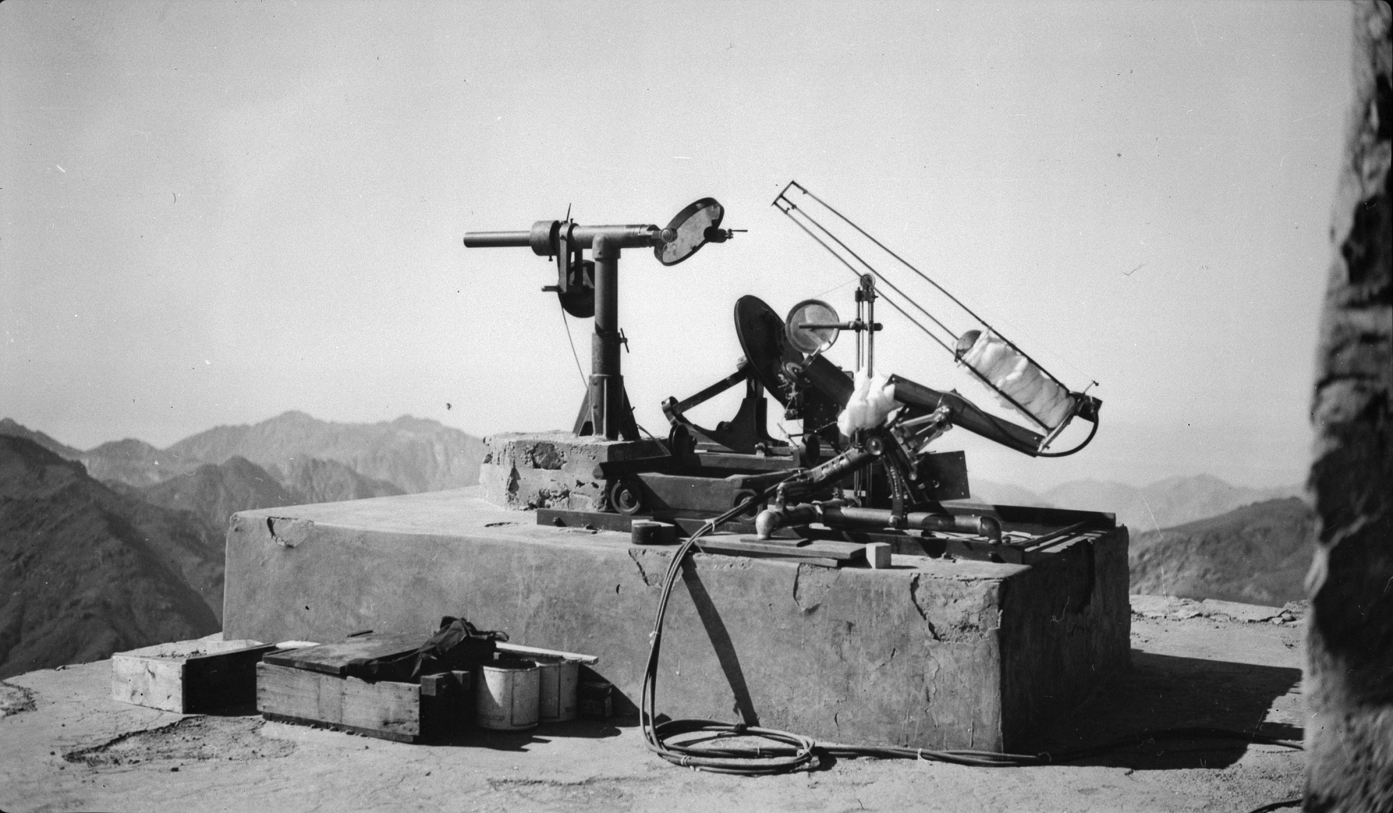 Instruments atop the Smithsonian Astrophysical Observatory Observing Station, Mt. St. Katherine, Egypt. The station was operational from 1933 to 1937.