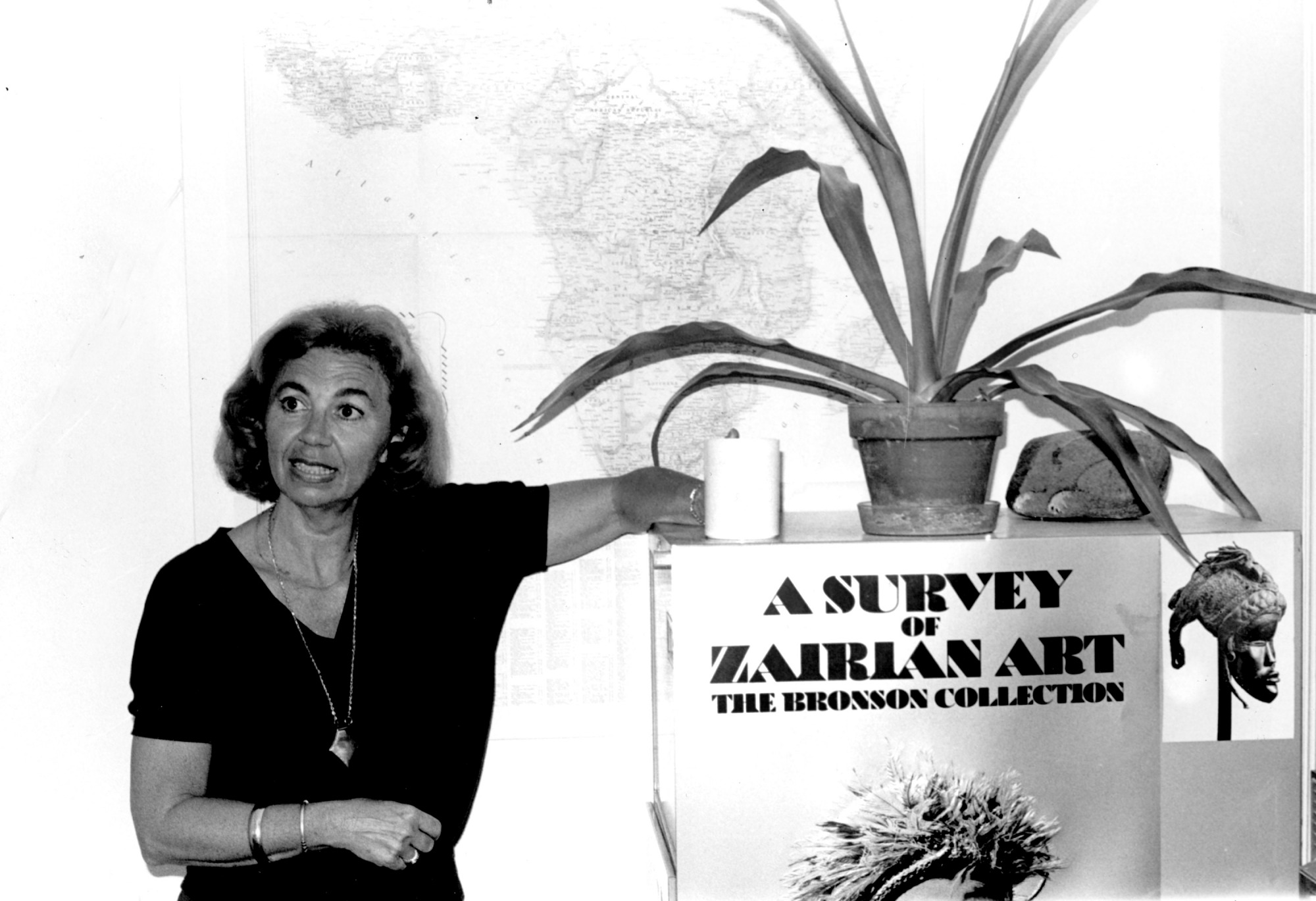 Jean Salan, Deputy Director of the National Museum of African Art (NMAfA), standing by the exhibit, "A Survey of Zairian Art, The Bronson Collections."