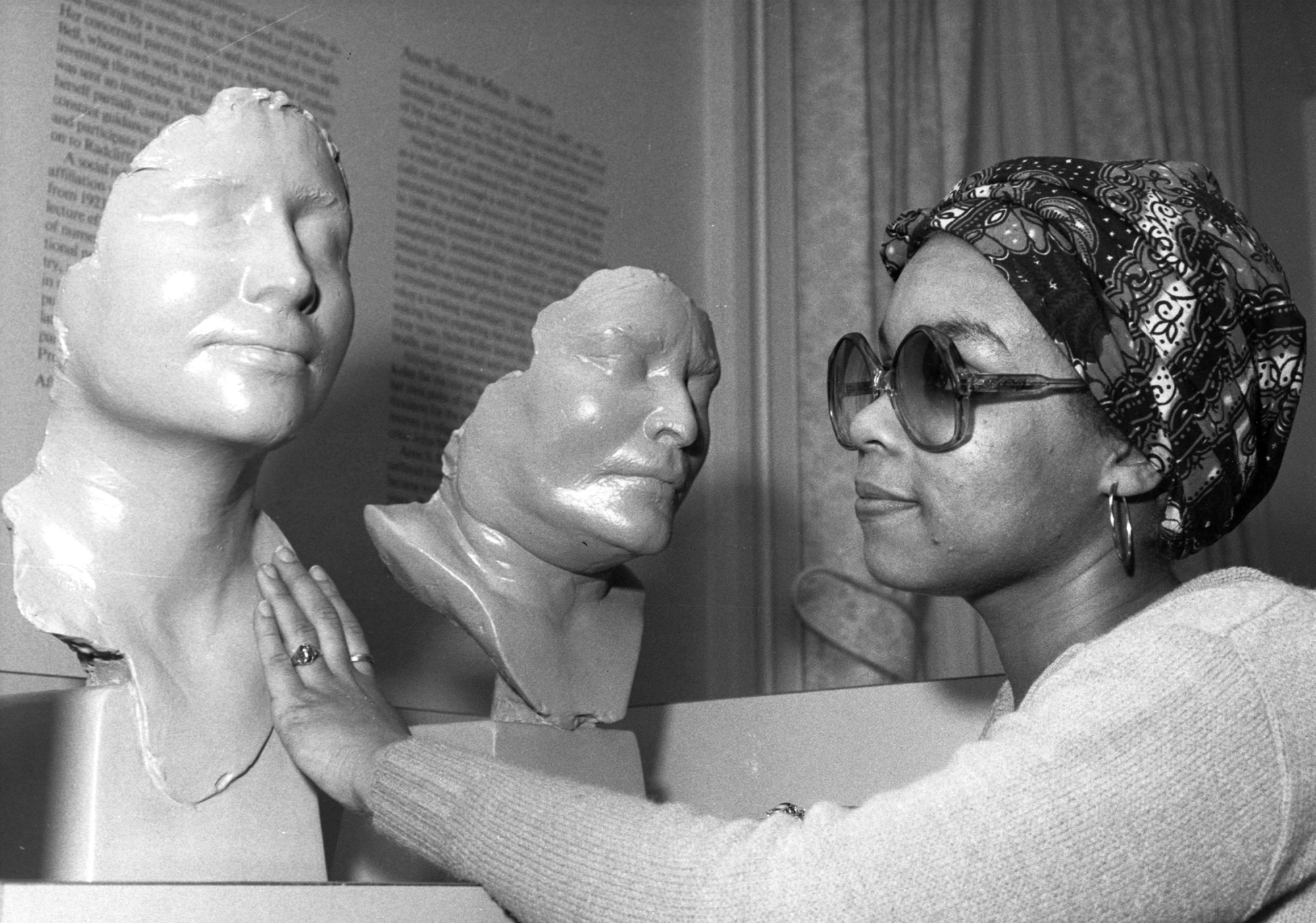 Tracy Carpenter, an education aide, with a life mask of Helen Keller for the Haptic Gallery at the National Portrait Gallery.