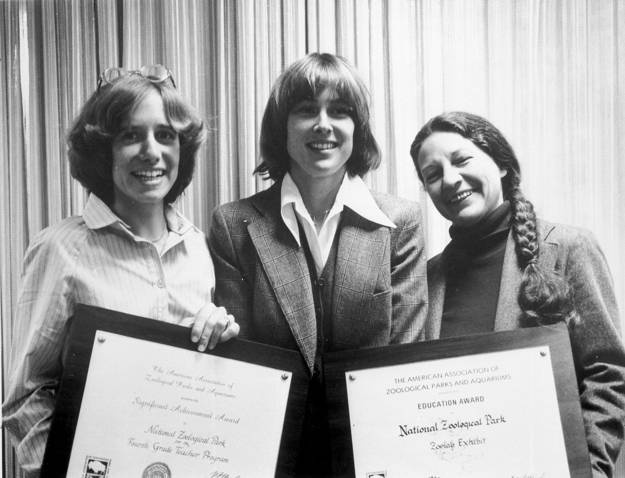 National Zoological Park staffers with 1978 Education Awards: (l-r), Judy Herman, Judith White, and Marlene Robinson from the Office of Education.