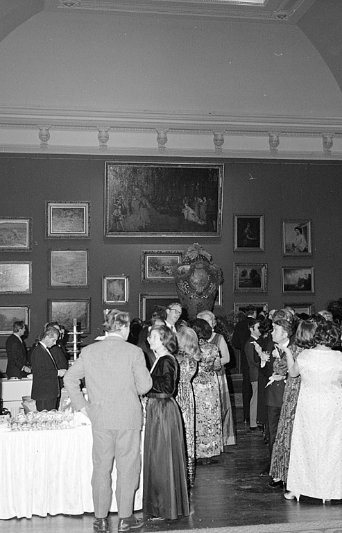 People gathered in the Grand Salon at the opening of new Renwick Gallery on January 27,1972. The paintings displayed are the same as those exhibited a century ago when the building served as the original Corcoran Gallery of Art.