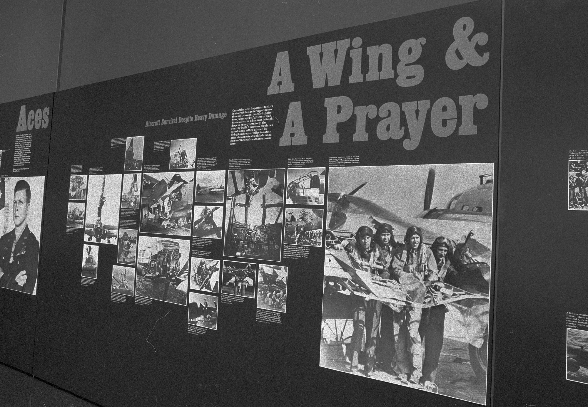 A portion of the World War II Aviation Gallery entitled, "A Wing and a Prayer" in the new National Air and Space Museum (NASM) building, 1976.