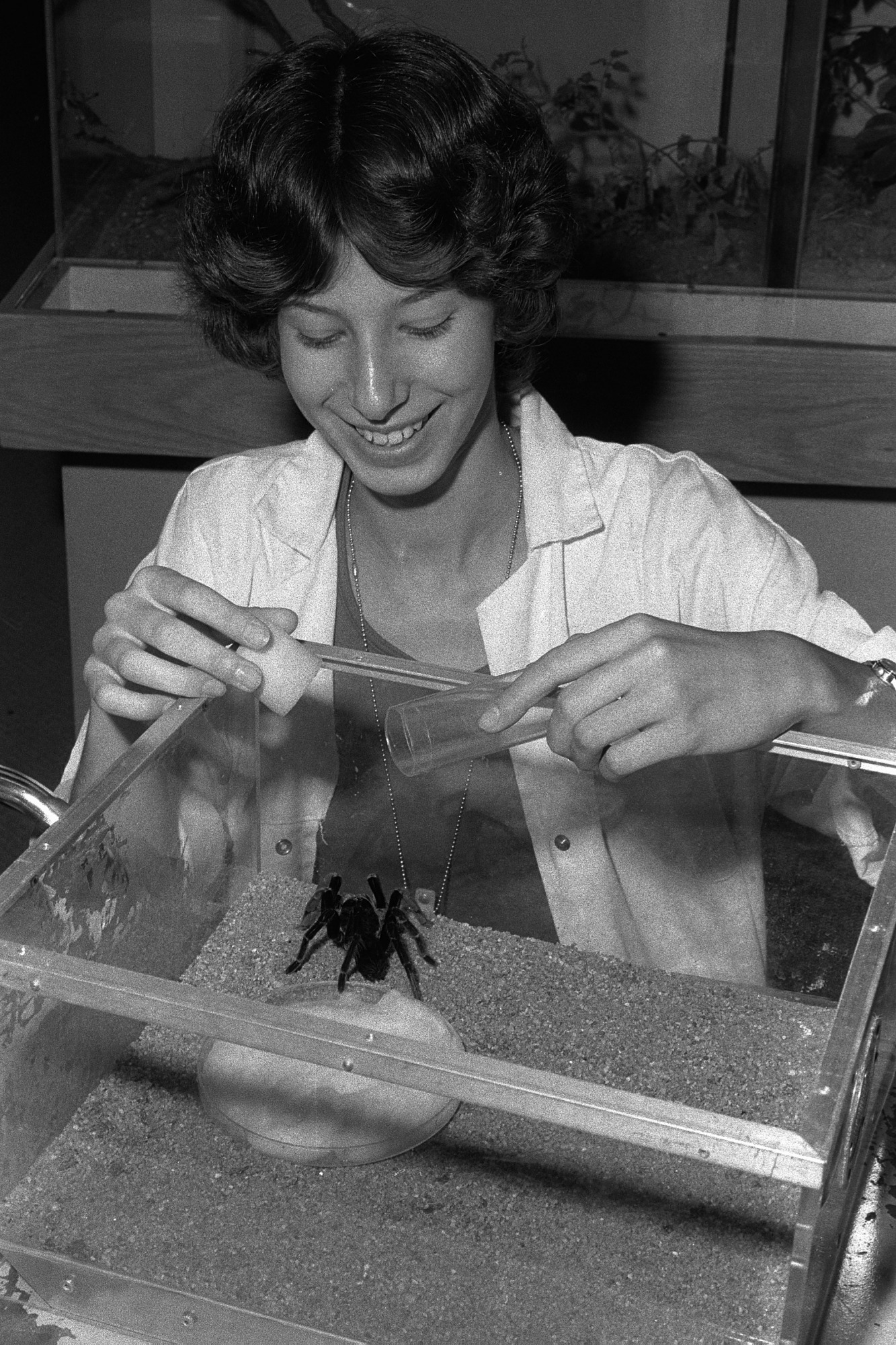 National Museum of Natural History intern Nora Besansky feeding a tarantula in the O. Orkin Insect Zoo.