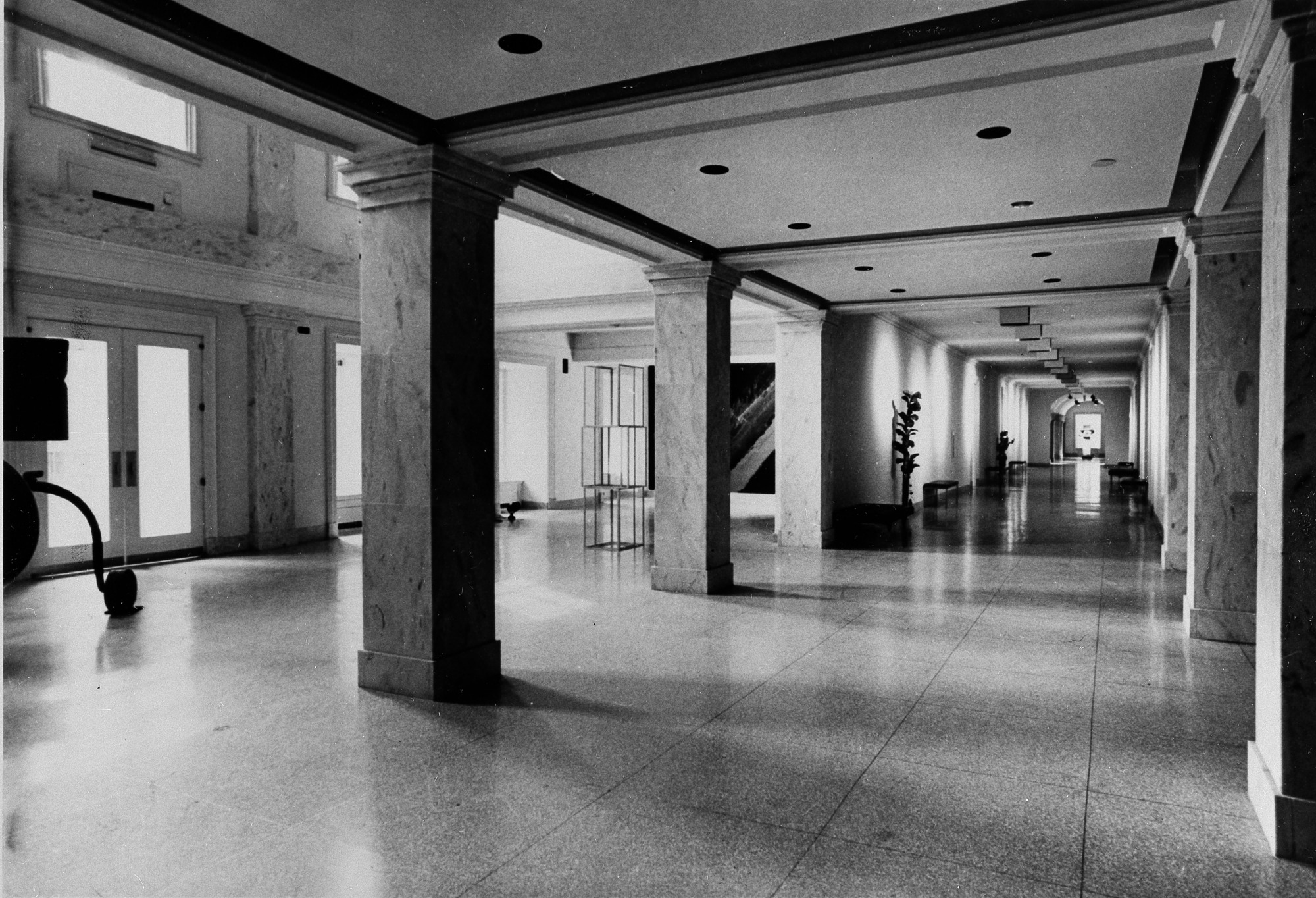 With the courtyard entrance doors on the left and looking toward the Grantie Gallery, the National Collection of Fine Arts, now the Smithsonian American Art Museum, occupies the old Patent Office Building.