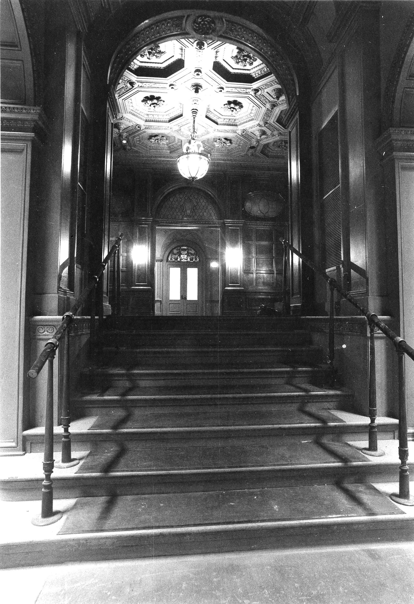 Main entrance (91st Street) to the renovated Carnegie Mansion, new home of the Cooper-Hewitt Museum of Decorative Arts and Design. The museum reopened to the public at its present home in 1976.