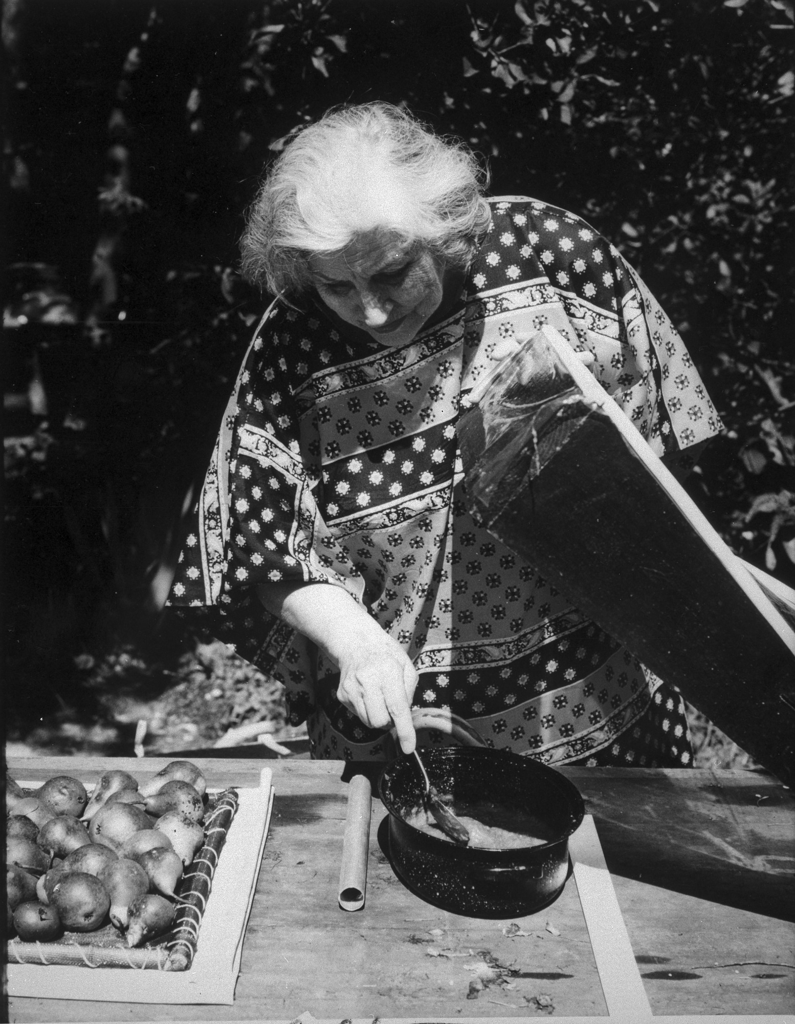 At the 11th annual (1977) Festival of American Folklife, Swedish-born Countess Stella Andrassy uses her own solar oven to demonstrate solar cooking as part of the Outdoor Presentation of "America's Appetite (For Energy)". Prominent in the solar energy field, concern for the energy need of the world's poor motivated her lifelong work. She held patents on solar water heaters, stills, stoves, and food driers.