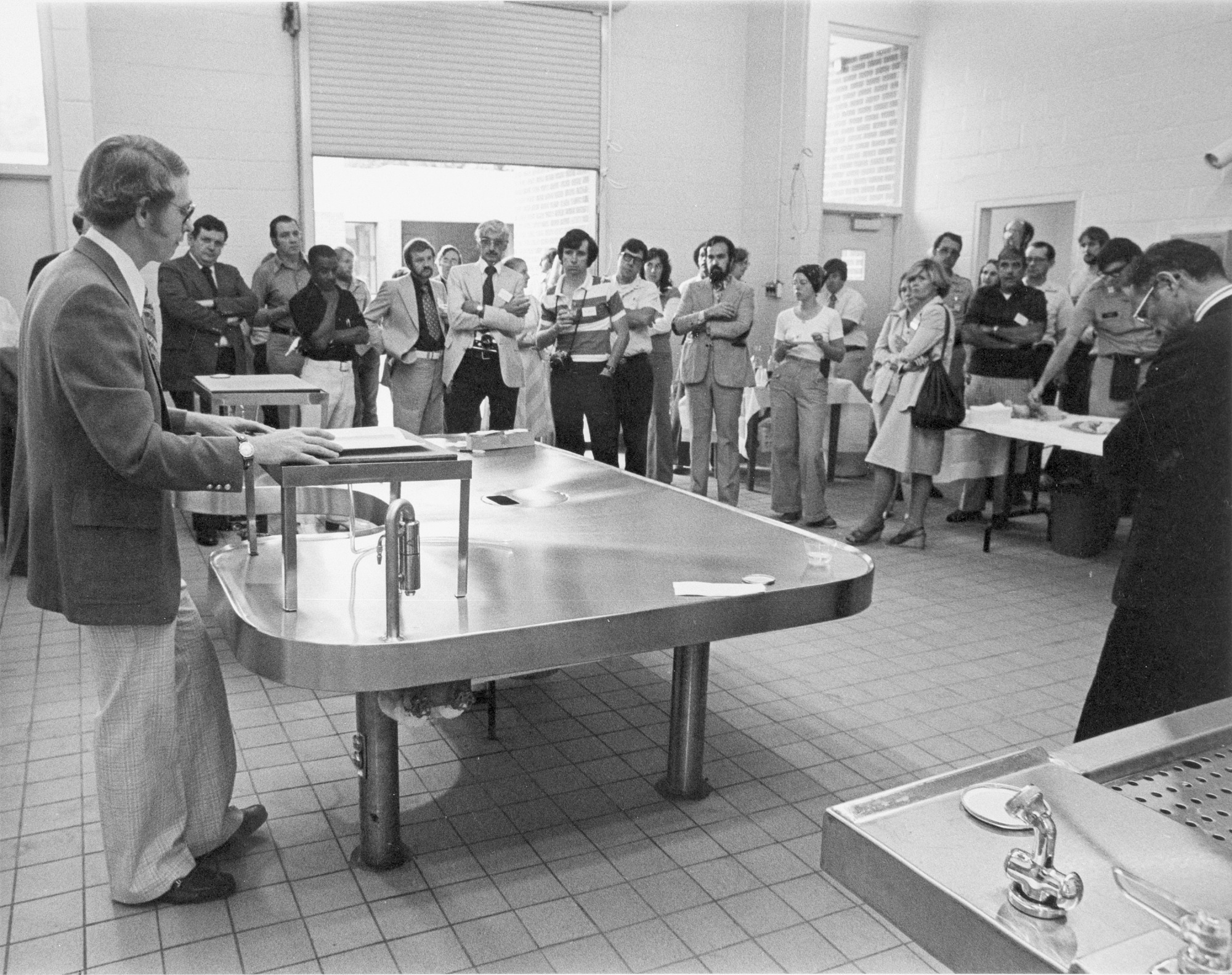Richard Montali, pathology director of the National Zoological Park's Office of Pathology, dedicates the new pathology and autopsy building, August 26, 1977.