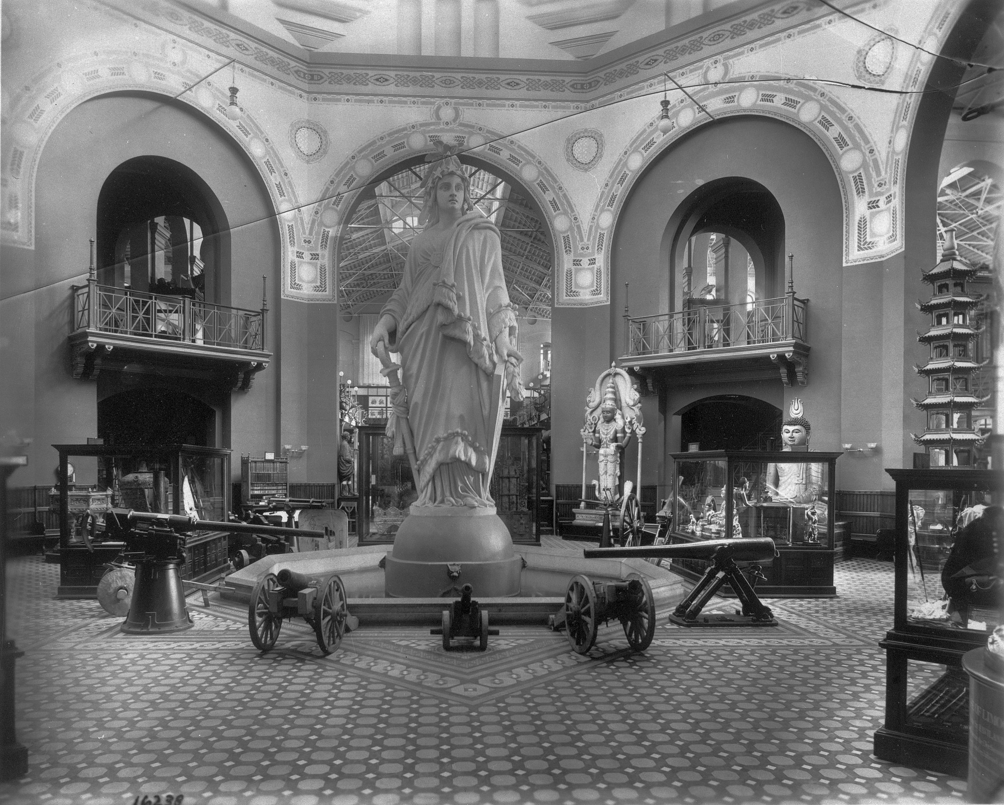 Arts and Industries Building rotunda with "Statue of Freedom," 1890's. Also in the rotunda are exhibits of Military History, and Asian Art.