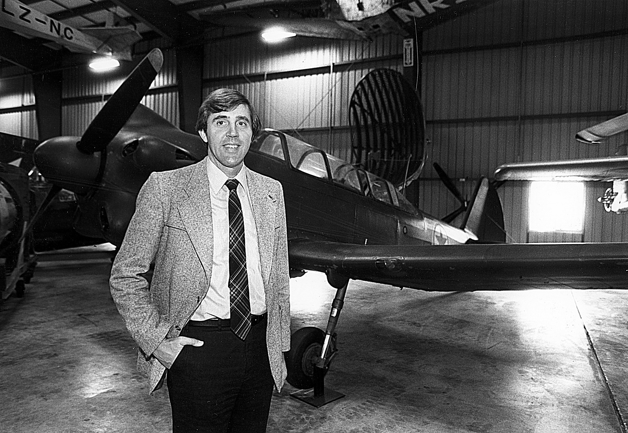 Von D. Hardesty a curator at the National Air and Space Museum posing with Yak 18, a Soviet Air Force trainer, displayed at the Paul E. Garber Preservation, Restoration, and Storage Facility.