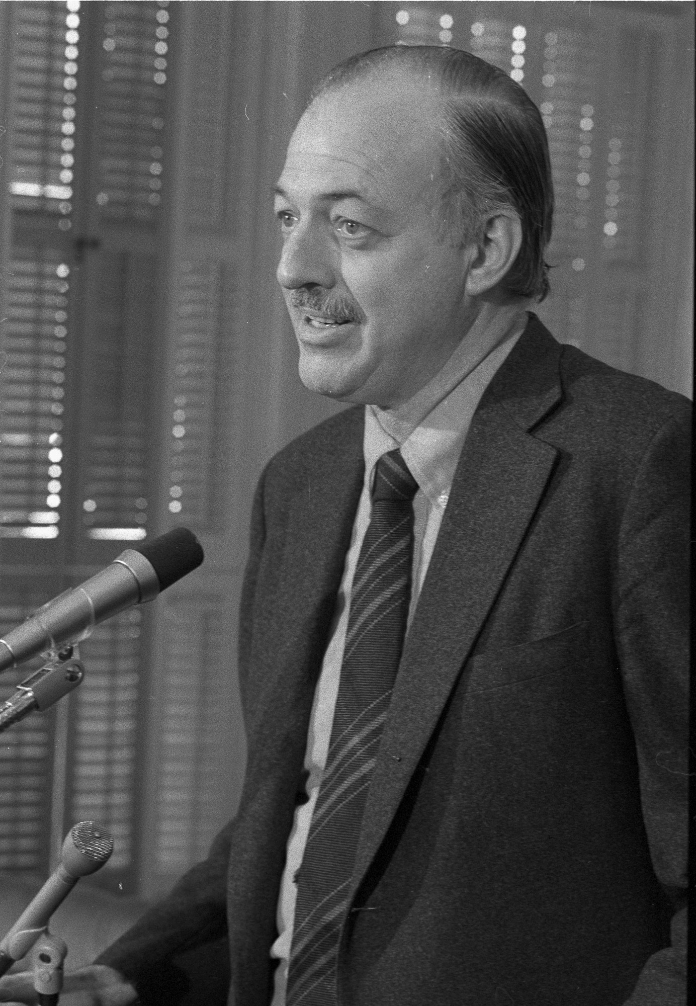 Ninth Secretary (1984-1994) Robert McCormick Adams (1926-) at the microphone.