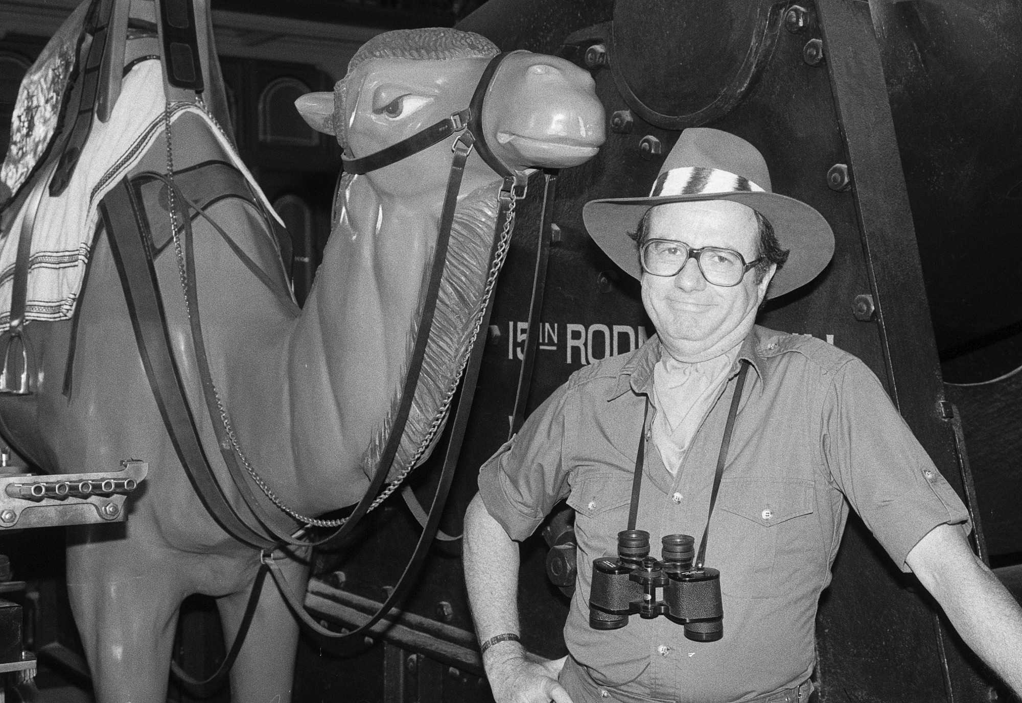 'Comedian Mark Russell was at the Smithsonian in September filming a special program -- 'Mark Russell Explores Washington, D.C.' -- for public television. (It was due to air in April 1985.) Russell was filmed behind the scenes in the National Museum of Natural History's Entomology Department and in the Arts and Industries Building. During filming with a statue of a camel positioned near a Gatling gun in the Centennial exhibition, Russell called the gun the "MX missile of the Rutherford Hayes administration."