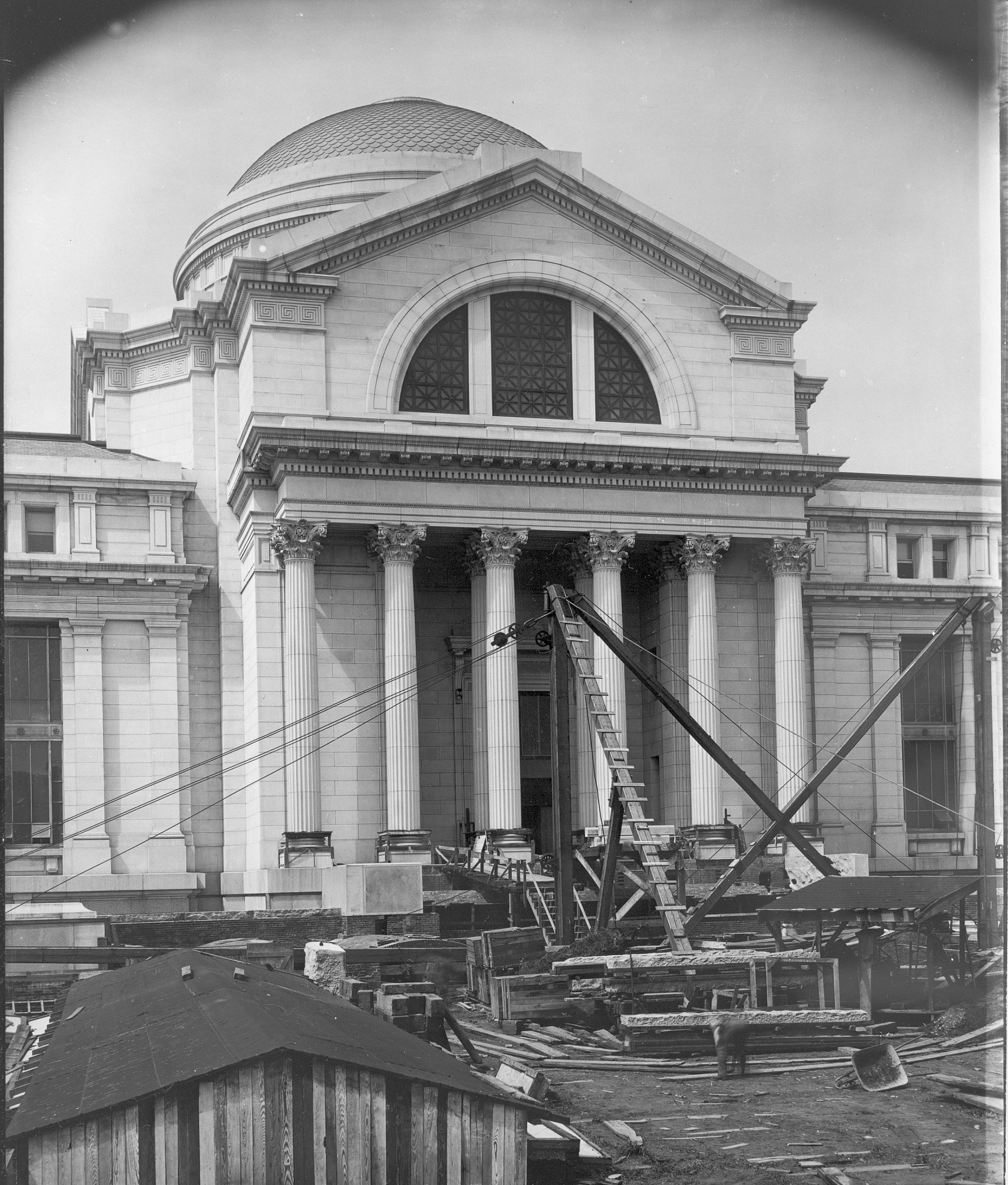 Construction of the South Porch of the new United States National Museum building, now the National Museum of Natural History, nears completion.
