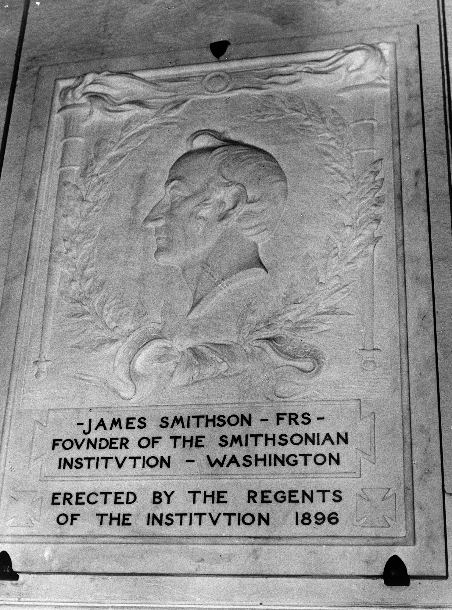 - Three copies of the Smithson Tablet or memorial plaque were made in bronze and two copies were made in Carrara marble. The artist for the plaque design was William Ordway Partridge of New York City. The plaque features a carved profile of James Smithson with the inscription, "James Smithson -- FRS -- Founder of the Smithsonian Institution -- Washington. Erected by the Regents of the Institution 1896." Initially, two bronze copies were cast in 1896. One was placed at the Smithson grave site outside Genoa and one was installed in the nearby Church of the Holy Ghost.