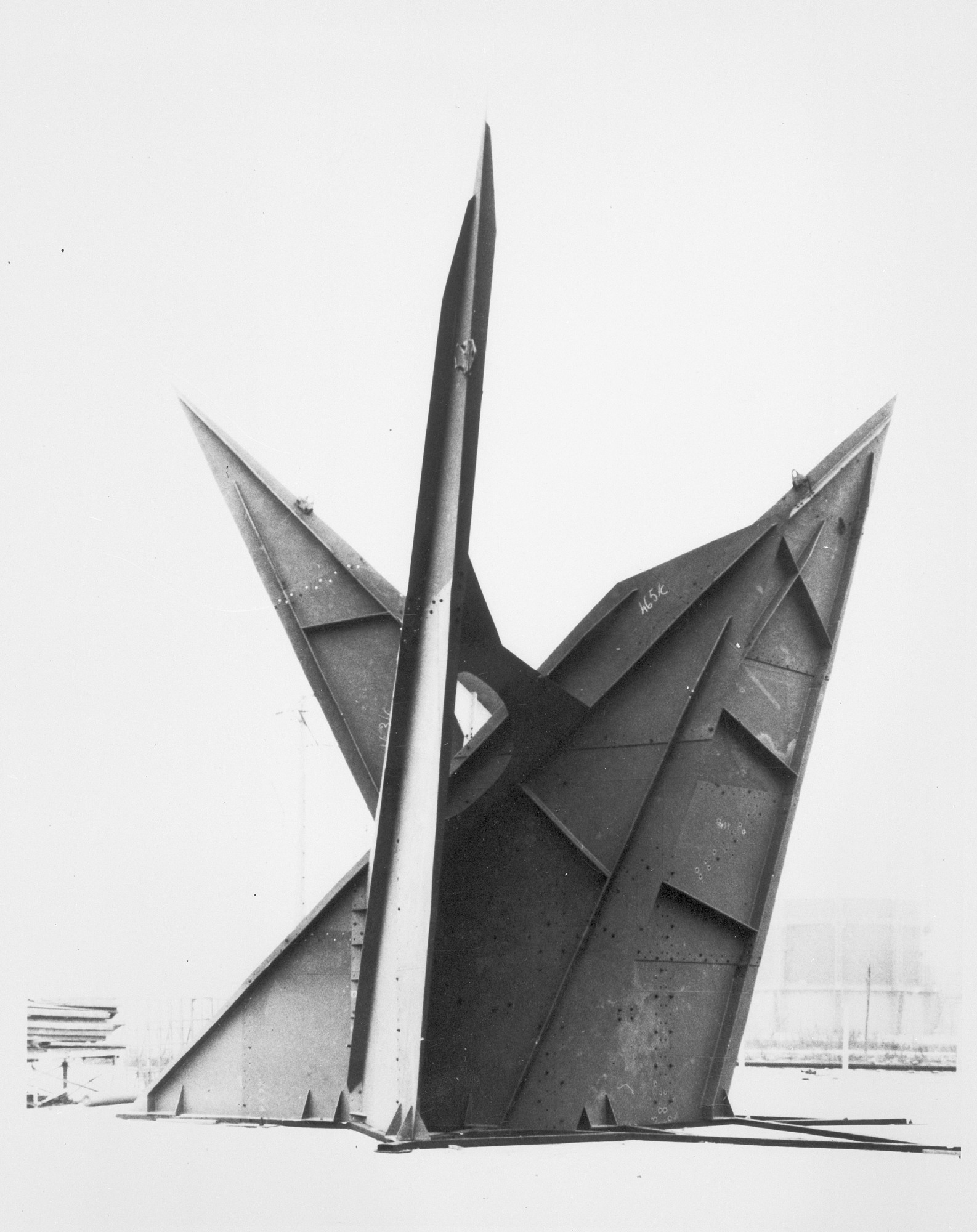 The 40 foot jet black stabile by Alexander Calder, to be erected in a pool on the 14th Street side of the Museum of History and Technology, now the National Museum of American History. The sculpture was a gift of Mrs. Gwendolyn Cafritz.