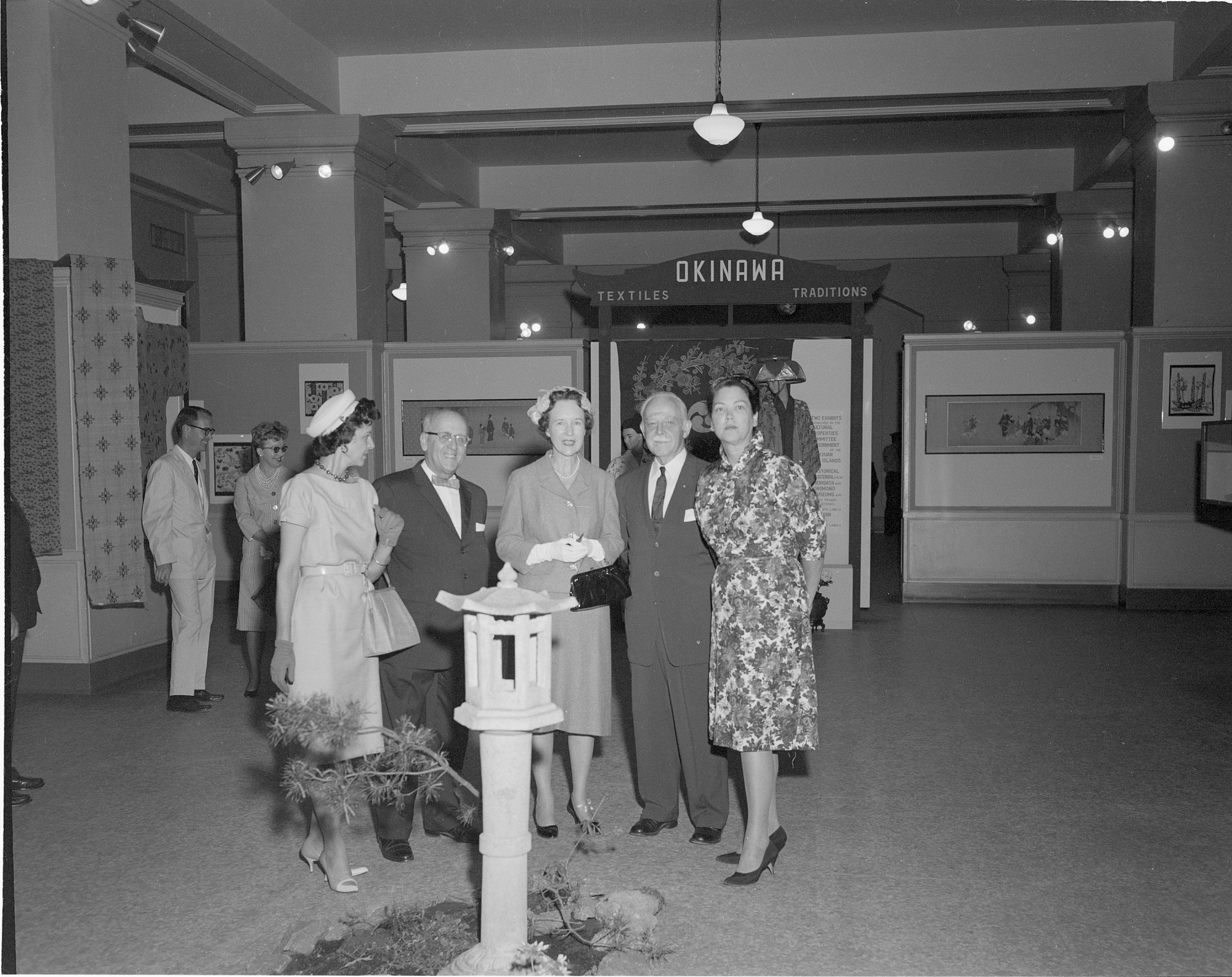 "Okinawa--Continuing Traditions," exhibit at the National Collection of Fine Arts, now the National Museum of American Art, Foyer Gallery in the Natural History Building, May 5-28,1962. The 83 pieces, representing a variety of arts, scanned 500 years. This photograph of dignitaries on opening day includes NCFA Director Thomas M. Beggs, second from left.