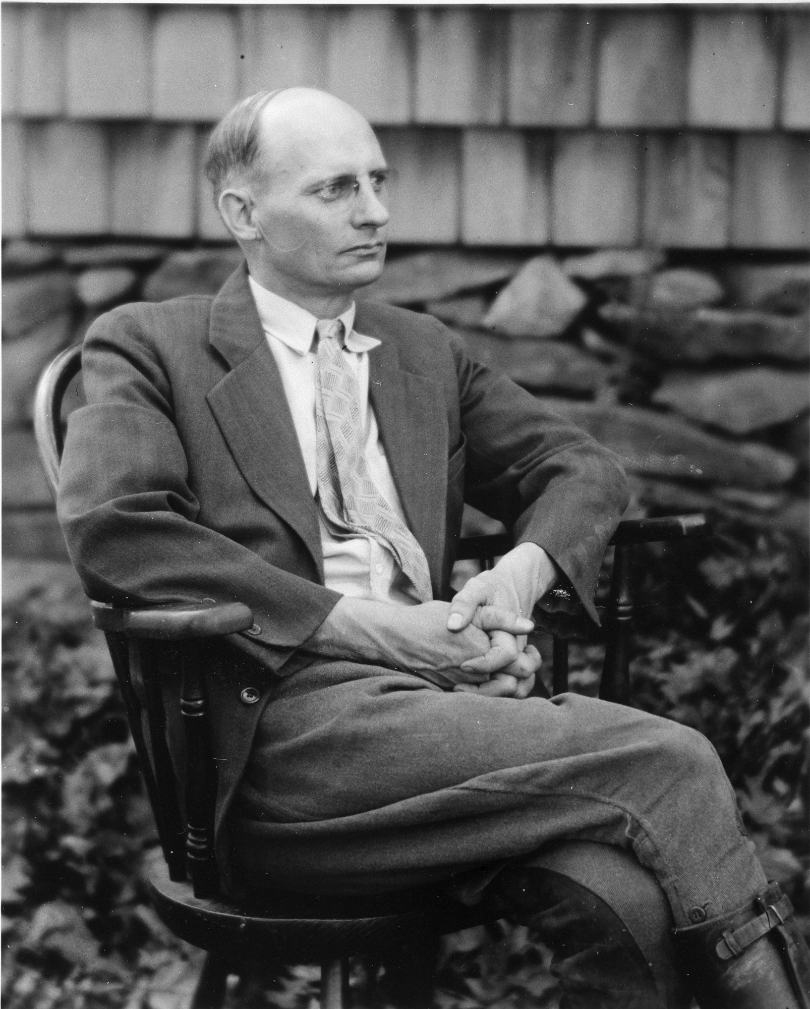 Ernest Pillsbury Walker sitting in a chair outside. Walker was the Assistant Director of the National Zoological Park from 1930 to 1956.