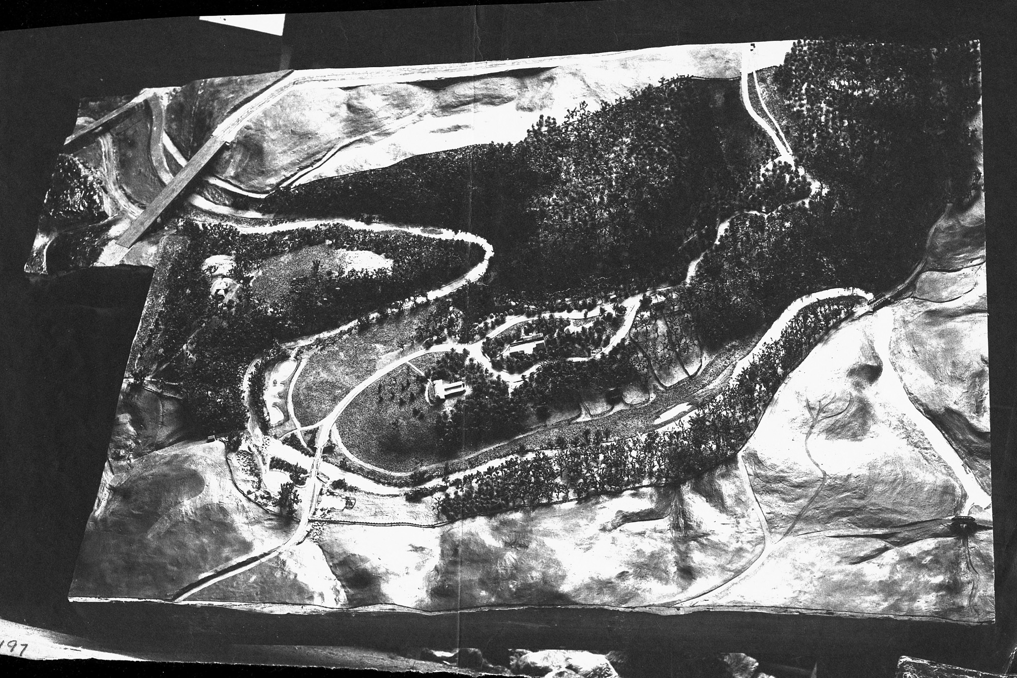 An early model of the grounds and buildings at the National Zoological Park site at Rock Creek Park, prepared by William Temple Hornaday.