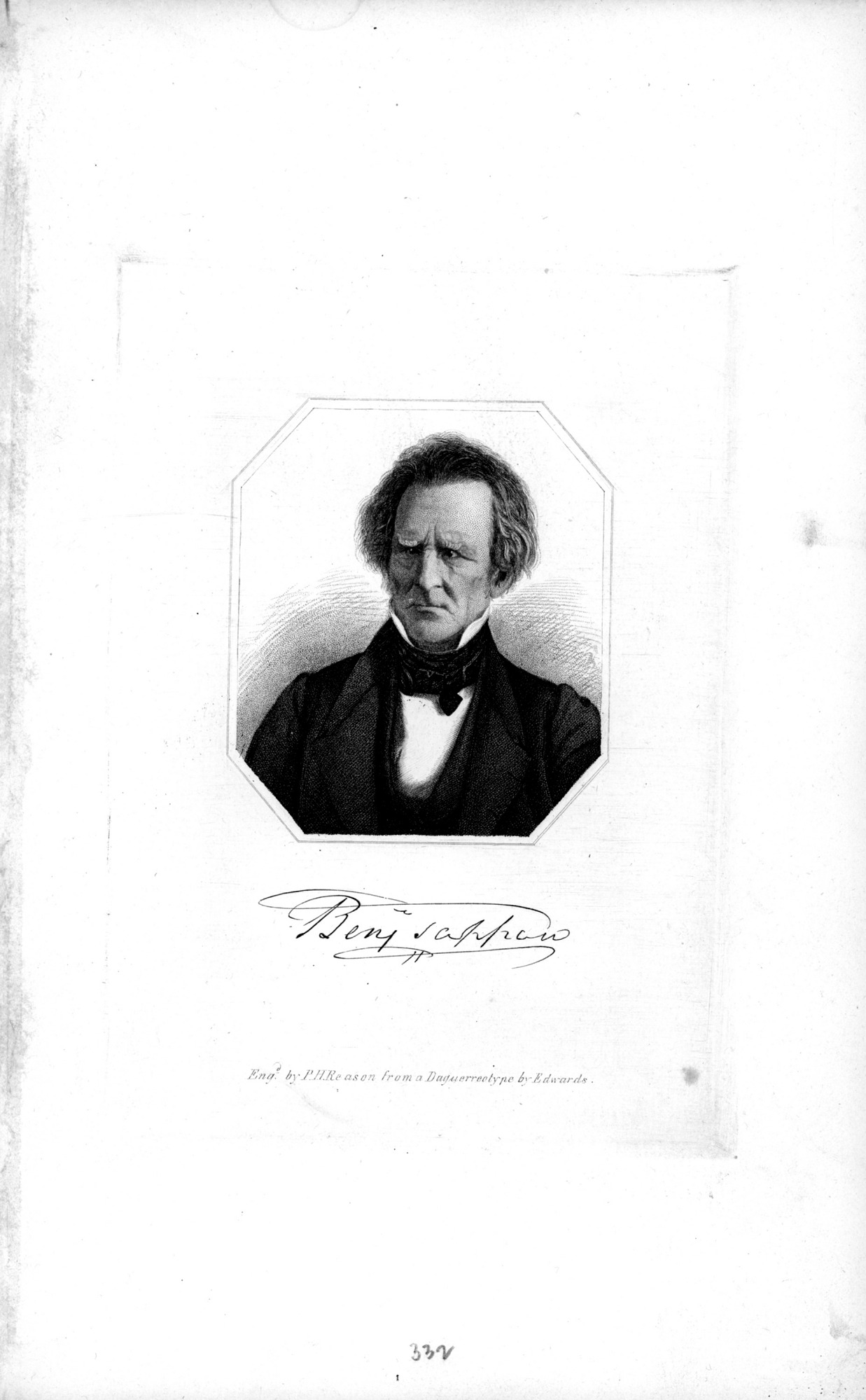 Benjamin Tappan (1773-1857) engraving by P.H. Reason from a daguerreotype by Edwards. Tappan was a member of the United States Senate while the legislation founding the Smithsonian was being debated. He introduced bills to found the Institution which included an experimental farm and botanical gardens. On December 12, 1844 Senator Benjamin Tappan of Ohio introduces a bill to establish the Smithsonian Institution. It emphasizes the useful sciences of natural history, chemistry, geology, astronomy and especially, agricultural experiments. The bill provides for the creation of professorships and lecturers, whose duties feature the productive and liberal arts, especially improvements in agriculture, horticulture and rural economy. Final legislation is not passed until August 10, 1846.