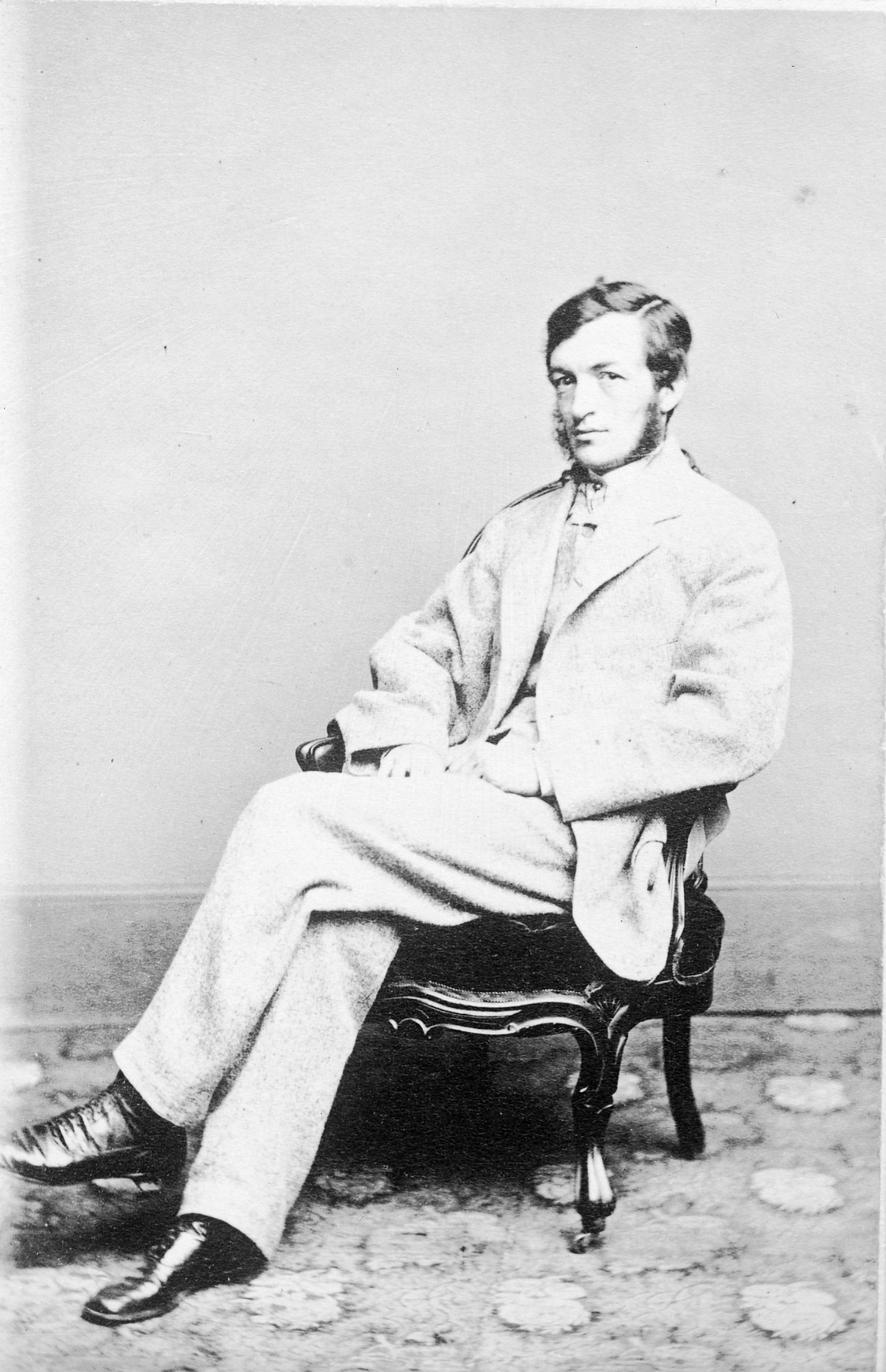 Seated portrait of Samuel P. Langley, third Secretary of the Smithsonian Institution (1887-1906), taken when he was a young man.