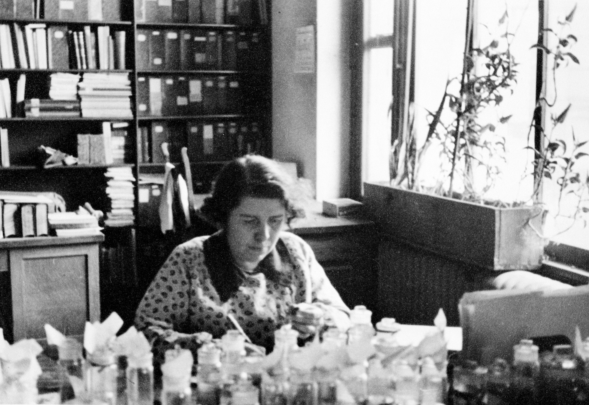 Doris Mable Cochran (1898-1968) herpetologist in the Division of Reptiles and Amphibians of the United States National Museum (now the National Museum of Natural History), at her desk working in the Spring of 1938. She was appointed an aide to Leonhard Stejneger in 1919, Assistant Curator in 1927, Associate Curator in 1942, and Curator in 1956. She retired in 1968.