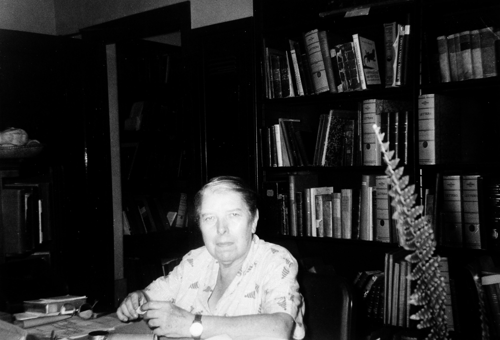 Doris Mable Cochran (1898-1968) herpetologist in the Division of Reptiles and Amphibians of the United States National Museum (now the National Museum of Natural History), working at her desk, 26 July 1956. She was appointed an aide to Leonhard Stejneger in 1919, Assistant Curator in 1927, Associate Curator in 1942, and Curator in 1956. She retired in 1968.