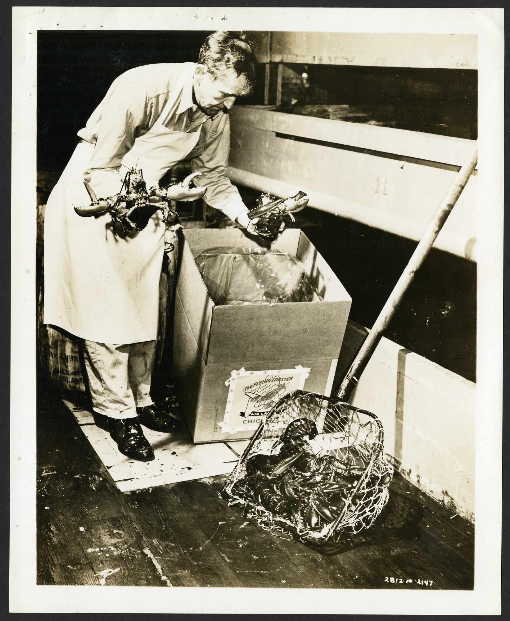 Hancock Pacific-Galapagos Expeditions - Waldo Schmitt on deck with straw hat and bucket of lobsters